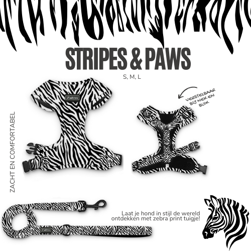 Laat je hond in stijl de wereld ontdekken met zebra print tuigje!